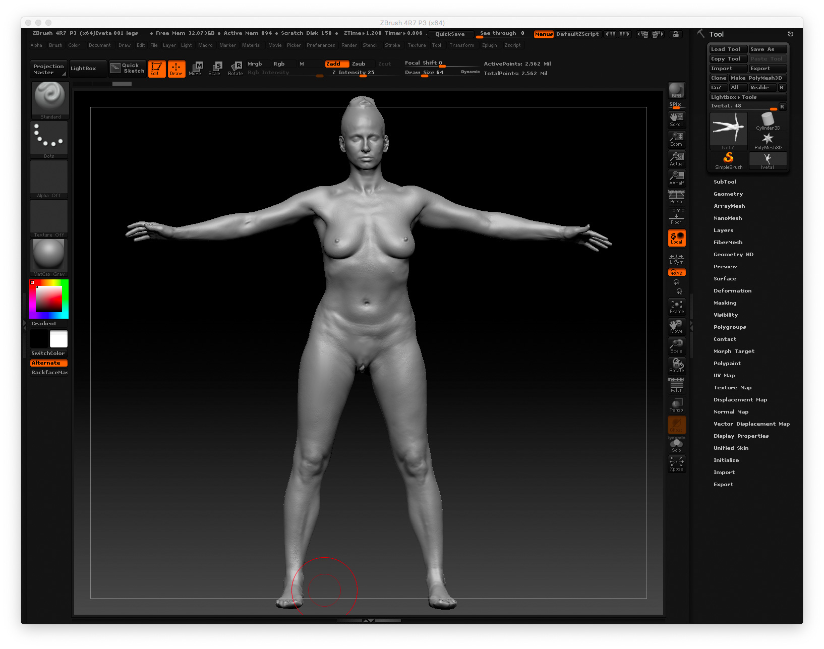 First, we start with the raw 3D scan of the model. This is Iveta, absolutely gorgeous, you can see the detail in her face, neck (and her collar especially), breasts, hips, knees. The issues are that her eyes are closed, she has no hair on her head, and she is apparently unaware that we already love her.