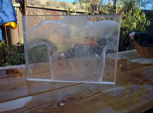 So this was a bit of modern technology (digital 3D scan, 3D editor, 3D printer), together with traditional glass casting (plaster/silica molds, KS-4 refractory for the walls, Bullseye glass clear cullet, and a Denver Glass kiln). That’s a long journey from start to finish. Let’s look at the steps.