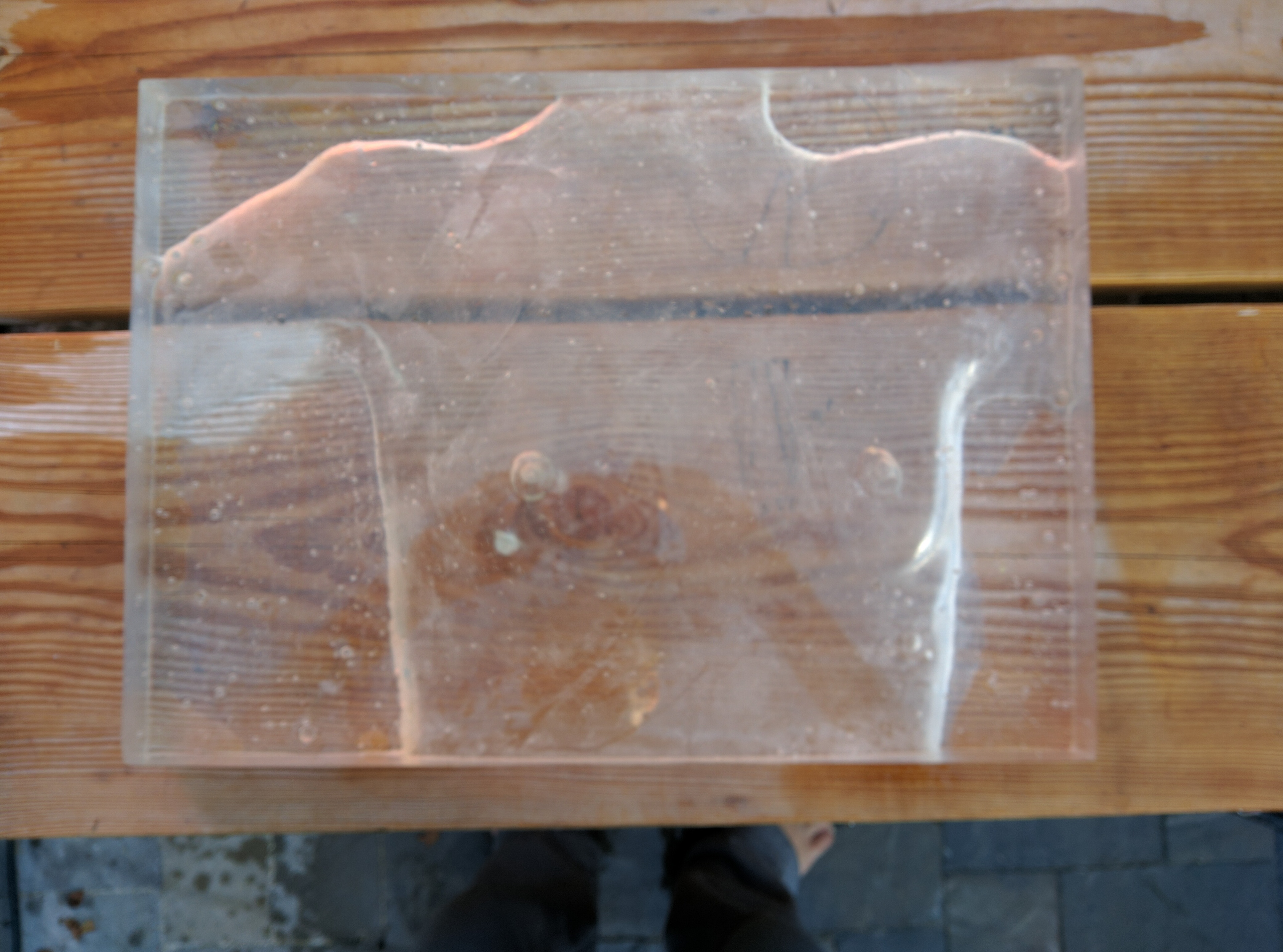 Here are images of the resulting glass block. In this case it is Libena’s breasts. The block is about 1.75″ thick, with polishing on the back side.